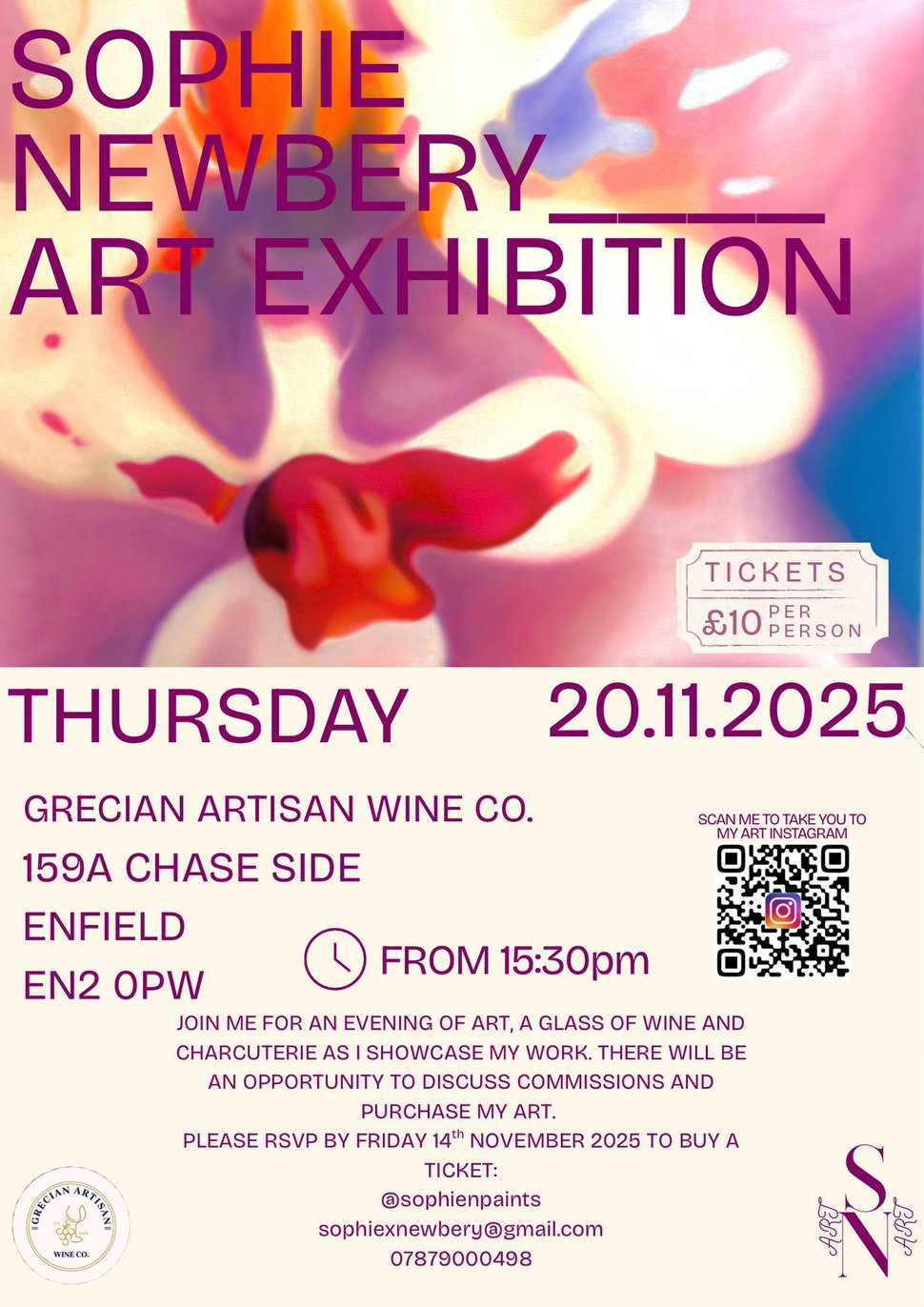 Sophie Newbery, a talented local artist and recent Fine Art graduate from Liverpool John Moores University. Born and raised in Enfield, Sophie is now preparing for her first solo exhibition right here in her hometown – and you’re warmly invited to come along and support her work.