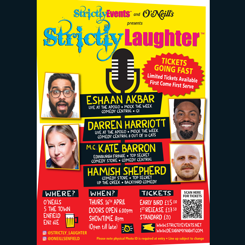 After 16 mega sell-out shows, Strictly Events in partnership with O’Neill’s is bringing you another massive night of comedy in North London.