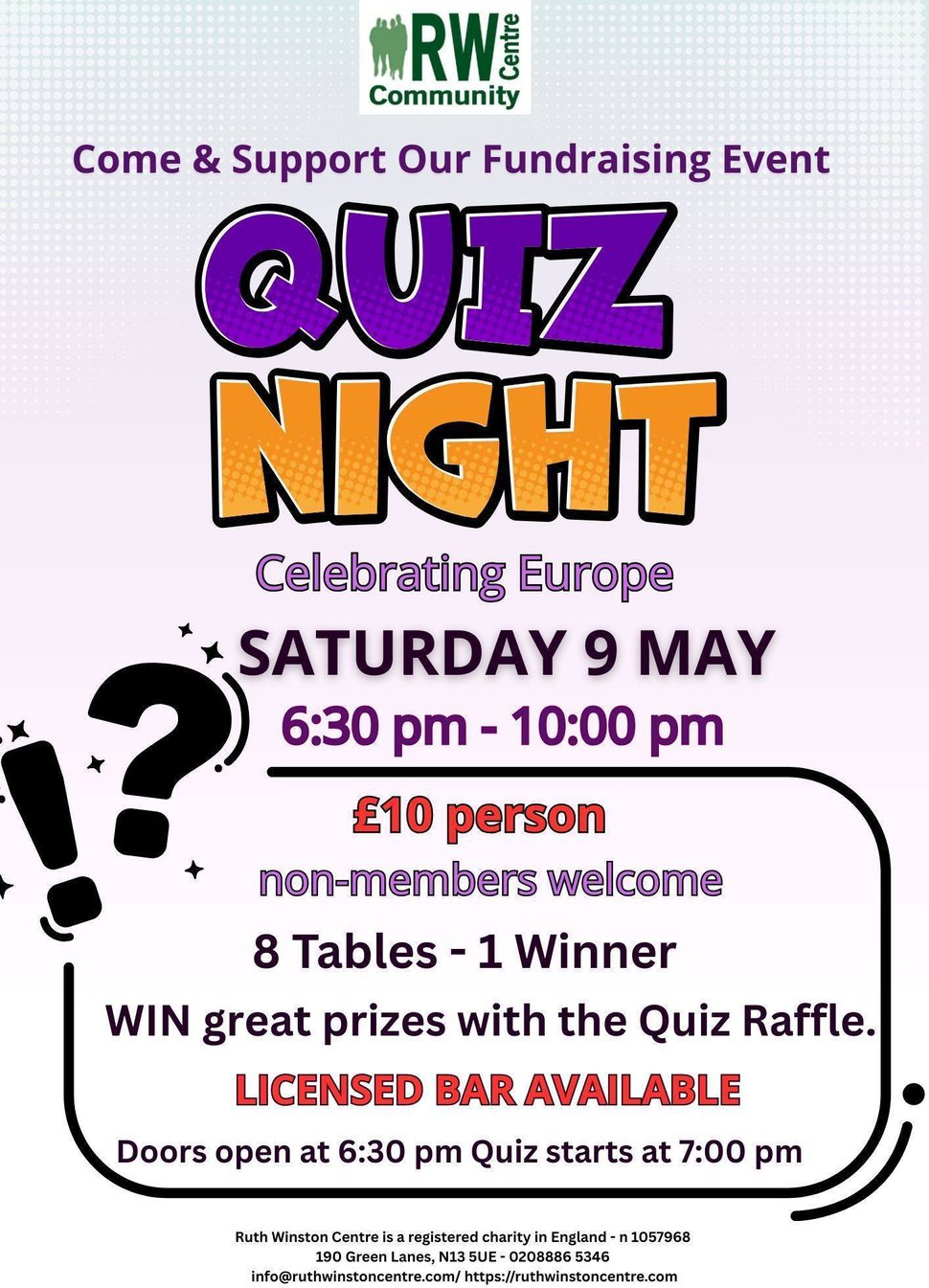 Are you a quizzer? Are your friends or family quizzers? Join us for our very popular Quiz Night – book your table TODAY. If you can’t make up a whole table, don’t worry, give us a call and we’ll help you to make some new quizzing friends.