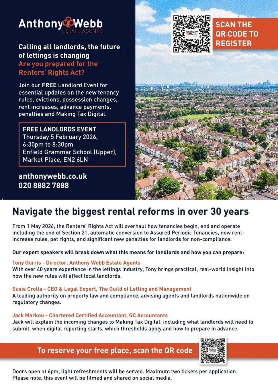 Hosted by Tony Ourris, Anthony Webb's director and local lettings expert, we’ve brought together leading experts to break down the key updates, offer expert advice, and answer your questions: