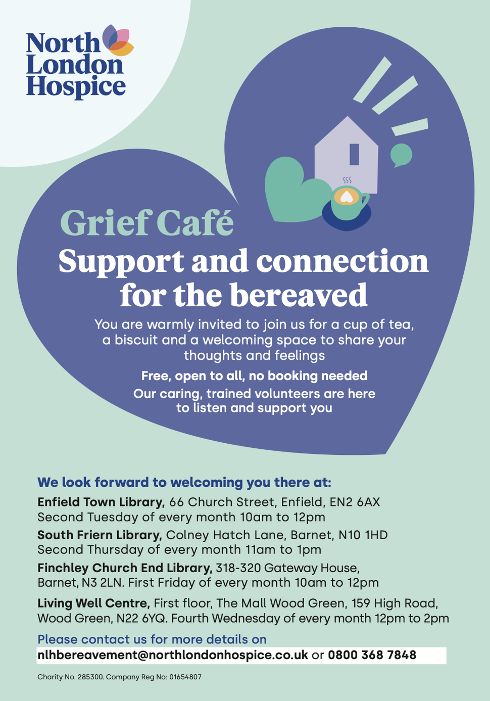 Your nearest Grief Café will be taking place on Tuesday 12 May at Enfield Town Library.